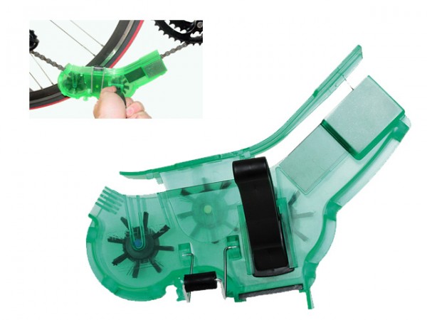 – Des brosses rotatives nettoient la chaîne – Les résidus métalliques restent collés au sol – À la sortie, la chaîne subit un nettoyage de finition au moyen d’une éponge – Avec poignée pratique pour l’utilisation à une seule main