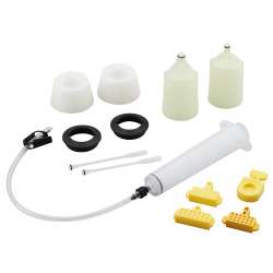 Comprend 2 entonnoirs (un pour BL et un pour ST), 2 bouchons d’huile, 1 seringue, 1 tuyau, 1 support de durite et 4 entretoises de purge différentes Entonnoir pratique et transparent avec une protection contre le débordement Base de l’entonnoir avec filetage correspondant aux leviers de frein ou aux leviers de changement de vitesse/frein Aucun adaptateur de purge supplémentaire n’est nécessaire Le clip de la durite maintient le durite sur le raccord